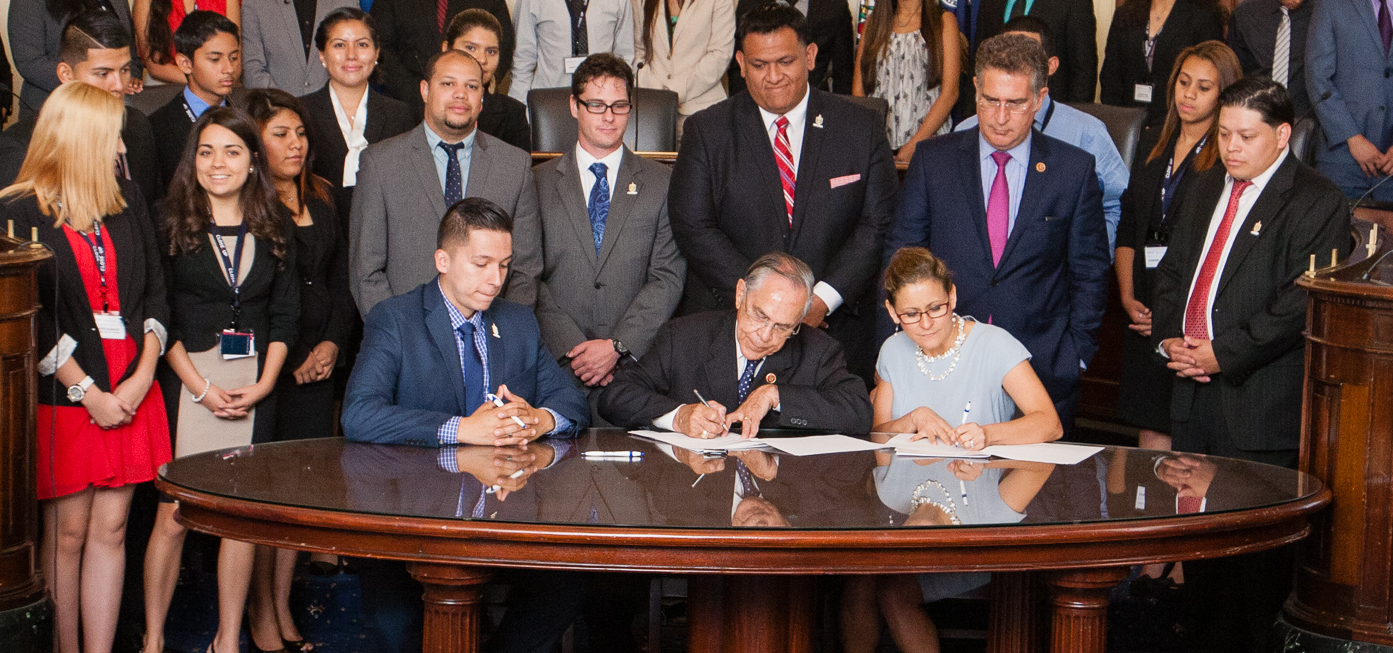 2014 was also a notable year as it marked the signing of a historic agreement between Lambda Theta Phi and the Congressional Hispanic Caucus Institute (CHCI). On July 30, 2014, President José Grajales met with leaders of CHCI to sign a memorandum of understanding between the two organizations for a philanthropic and service-oriented partnership to help develop Latin@ students nationwide. Lambda Theta Phi has committed to fundraising for CHCI’s R2L NextGen Program as its national philanthropy, as well as supporting CHCI’s Ready 2 Lead college readiness programs throughout the country with alumni and undergraduate mentors.